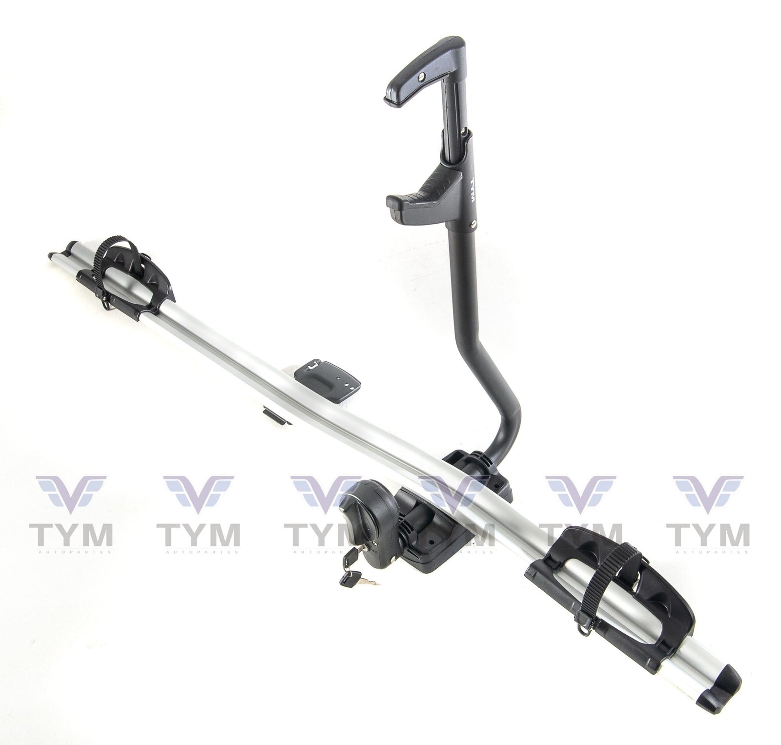 Portabicicletas de techo para carro TYM para carros, automóviles y camionetas, su calidad es superior a los modelos anteriores ya que las terminaciones, chapas correas, aluminio, brazo, peso, pintura es de calidad 1A cuenta con un brazo tipo gancho con recubrimiento tipo almohadilla la cual proteje el marco de la bicicleta en especial los de pintura en carbón, se asegura con llave, sus respectivos soportes con correa vienen en sentido transversal para una mejor sujeción en cada rueda.